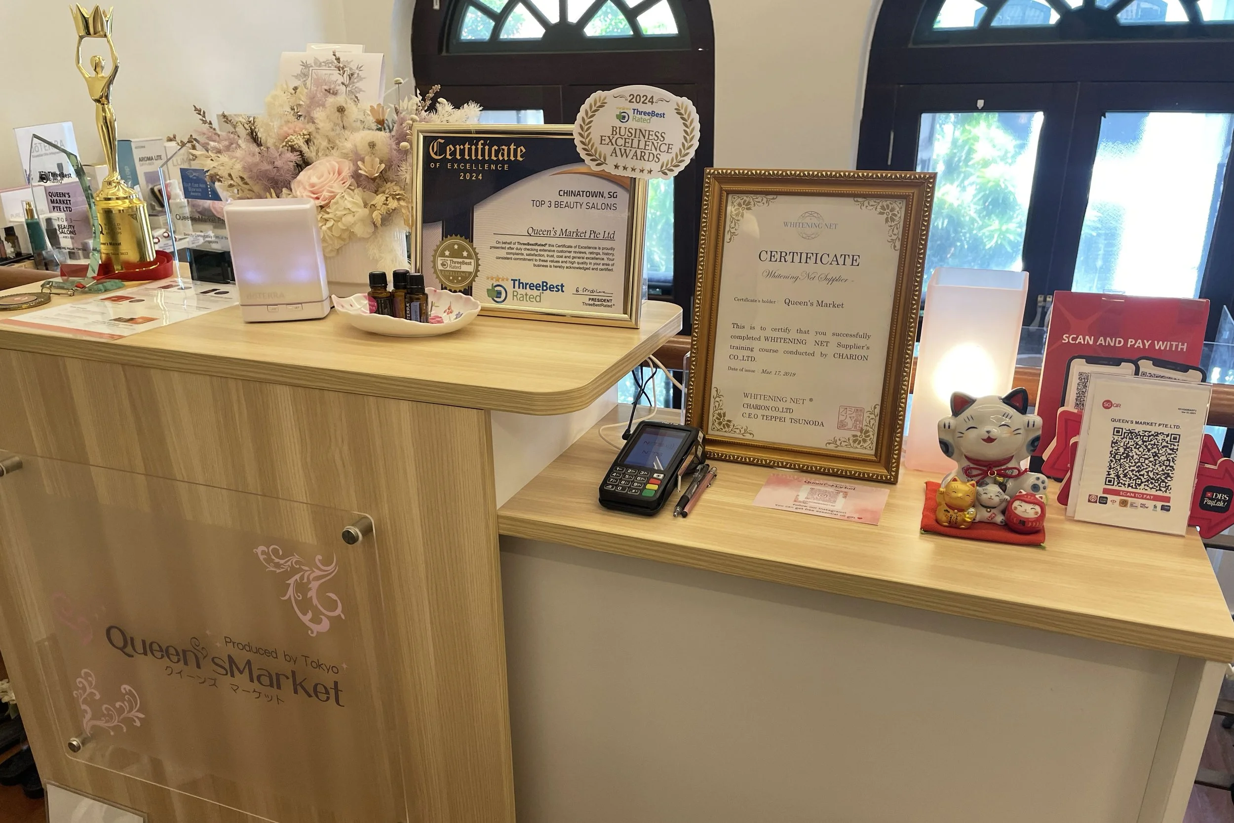 A five-minute walk from Telok Ayer MRT station, Queen’s Market is an 8-year award-winning Japanese beauty salon who have received several accolades for its quality services- “Top 3 Beauty Salons in 2024” by ThreeBestRated Singapore.