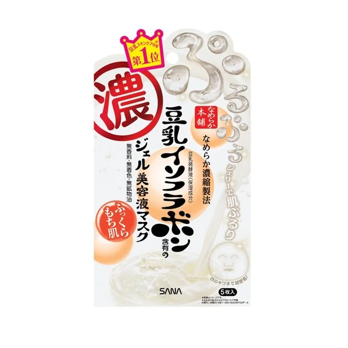 SANA Namerakahonpo has an entire soy bean skin care series which includes face mask, facial essence, lotion, eye cream and more. Namerakahonpo Essence Jelly Mask (100% Japanese cotton face mask) contains soy milk fermented liquid, soy bean see extract, soybean protein (vegetable collagen).