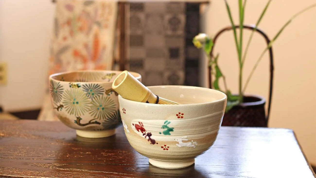 Every utensil used in the Japanese tea ceremony, known collectively as chadōgu, is thoughtfully selected for both its beauty and purpose. Each item plays a vital role in the ritual, contributing to the overall harmony and flow of the experience. The chawan (茶碗) is the tea bowl used for whisking and serving matcha; the chasen (茶筅) is a bamboo whisk that blends the matcha into a smooth, frothy consistency; and the chashaku (茶杓) is a slender bamboo scoop used to measure the right amount of matcha powder. Together, these utensils embody the spirit of precision and mindfulness central to the tea ceremony.
