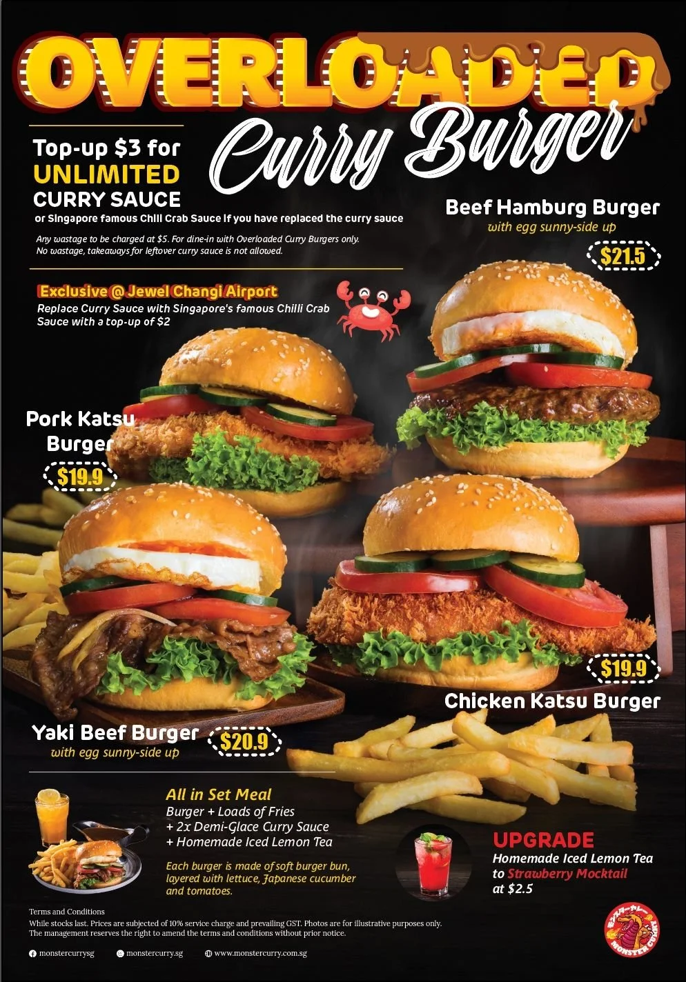 Plus, halal diners can head to Monster Curry’s halal-certified sister brand, Monster Planet and enjoy the Overloaded Curry Burger range (excluding pork).