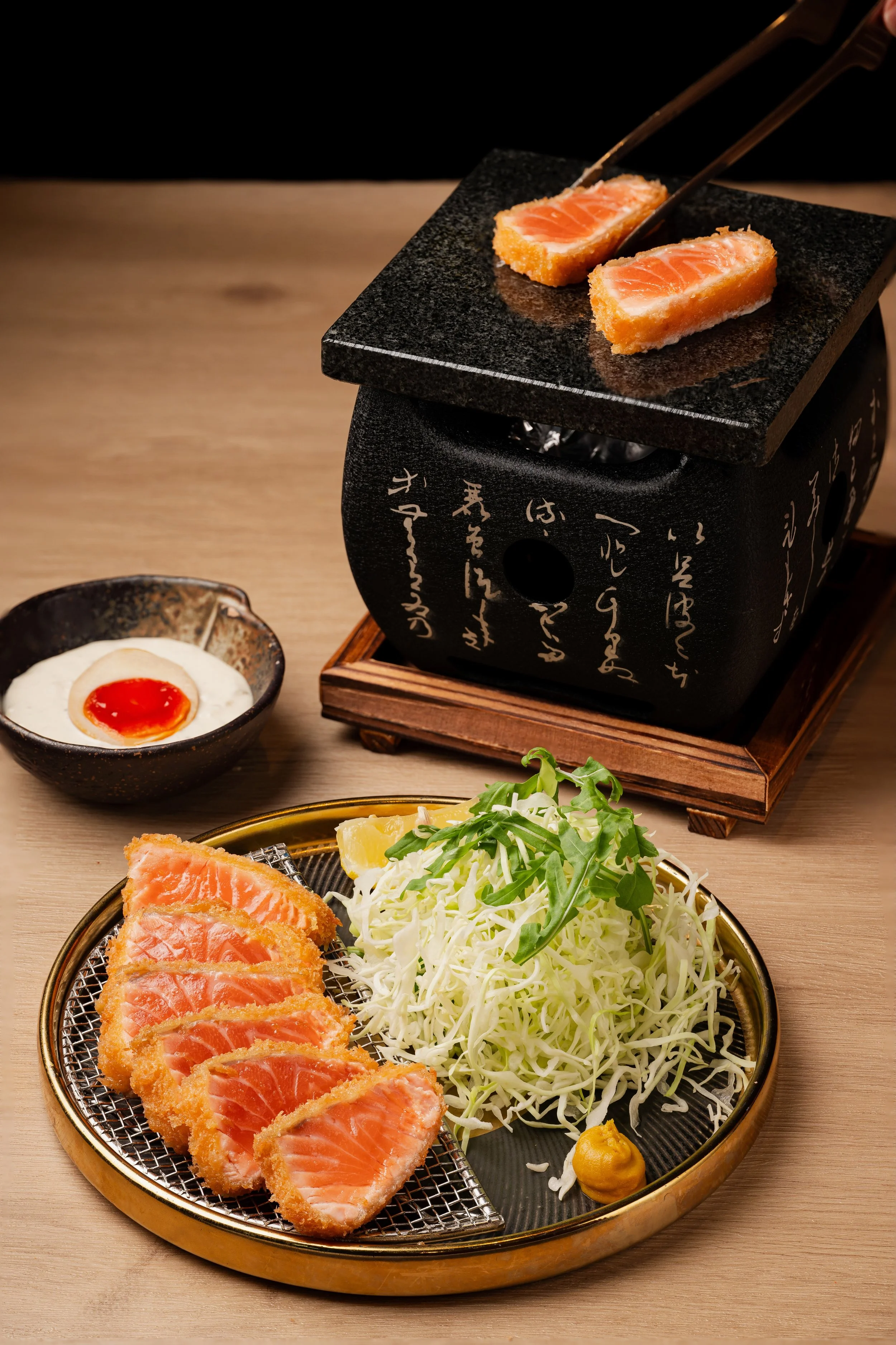 Another highlight is the Salmon Katsu Ishiyaki ($24) - Sashimi grade salmon katsu served alongside a hot stone grill. Simply mash the ajitama egg into the tartar sauce as a dip for the salmon katsu.