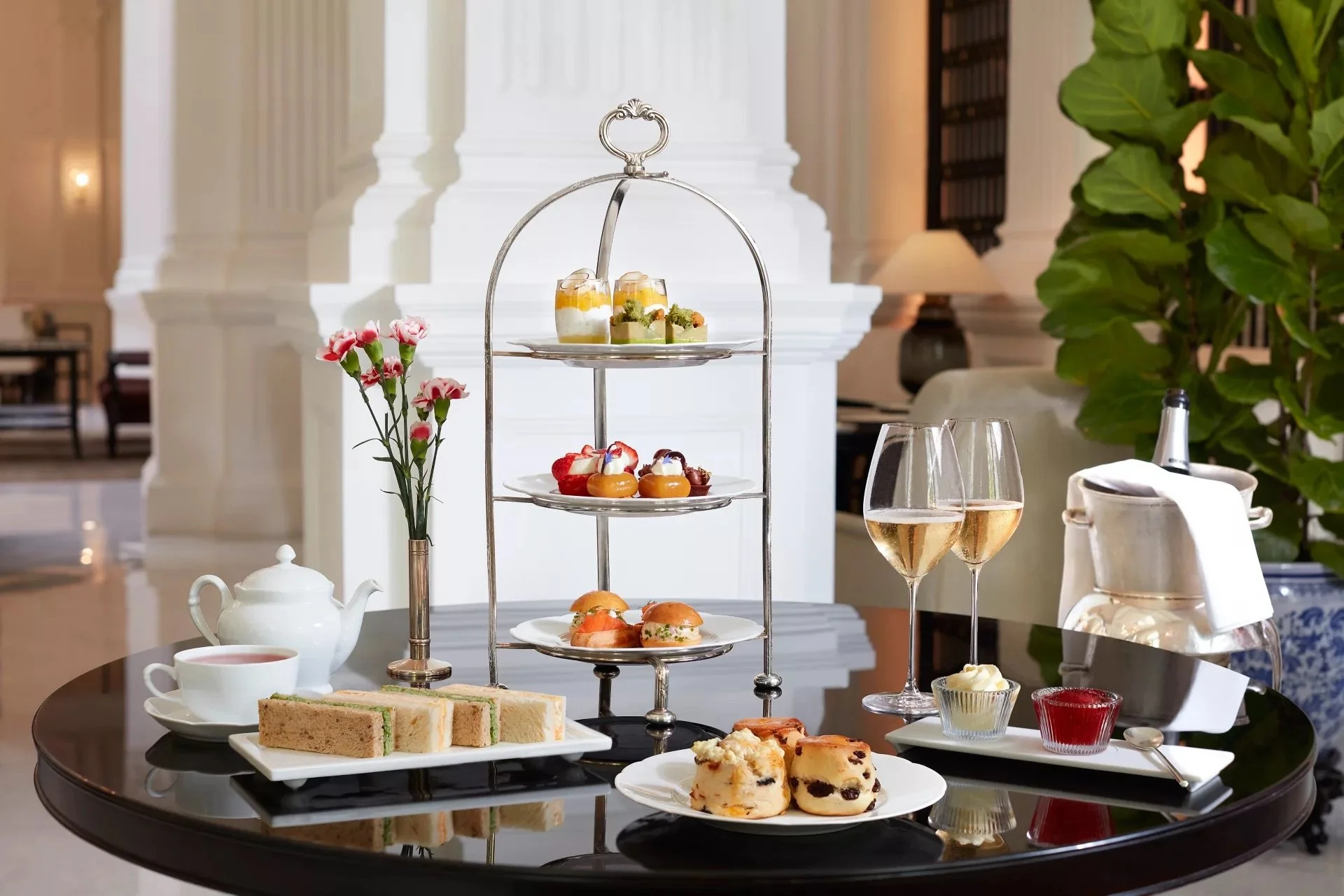 This refined experience pays homage to the 19th-century ritual with a beautifully curated selection of delicate finger sandwiches, house-baked scones, exquisite cakes, and seasonal delights, all served on a classic three-tier silver stand.