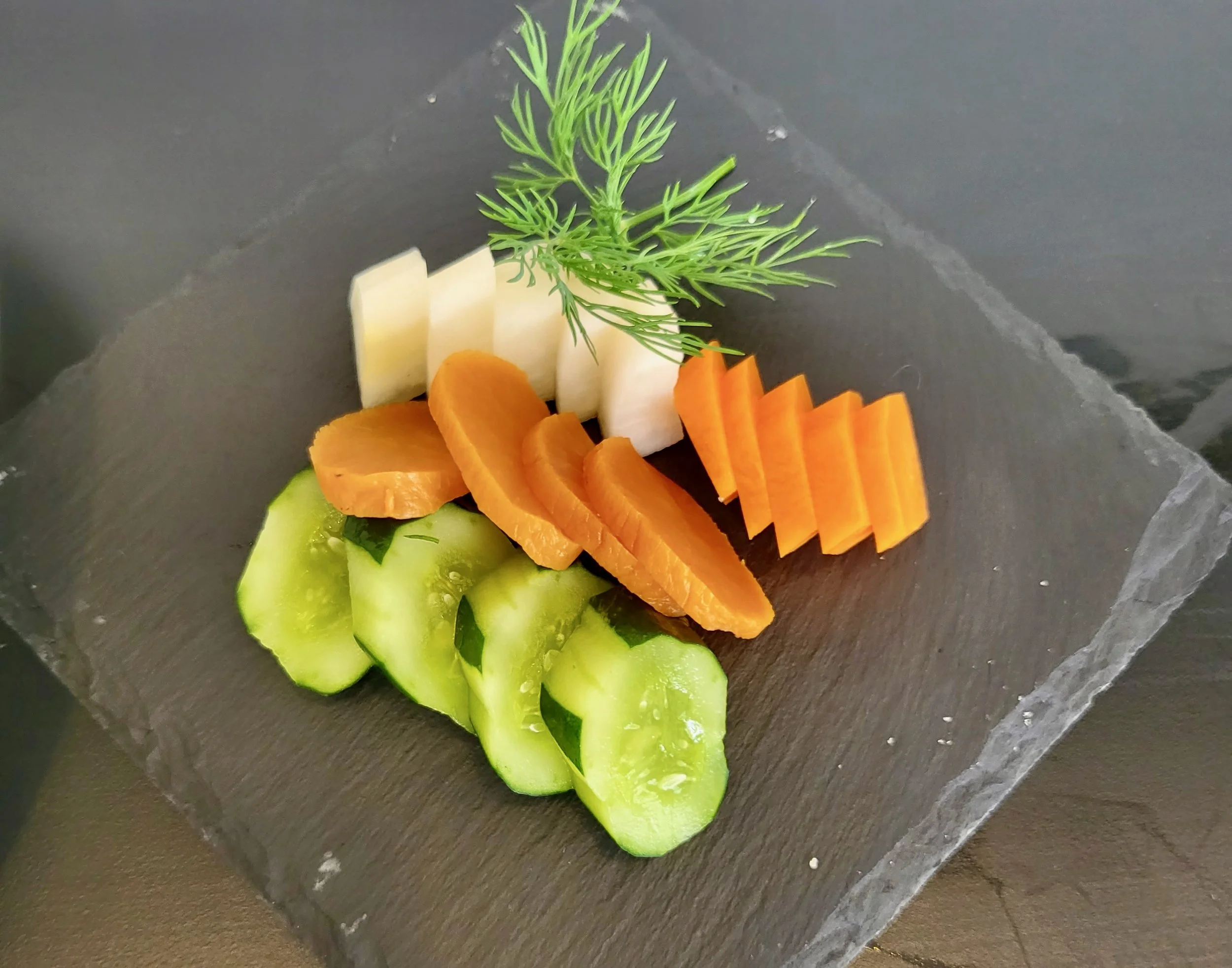 Japanese pickles (tsukemono) - a simple yet crisp, salty, tangy appetiser fermented in a mixture of roasted rice bran.