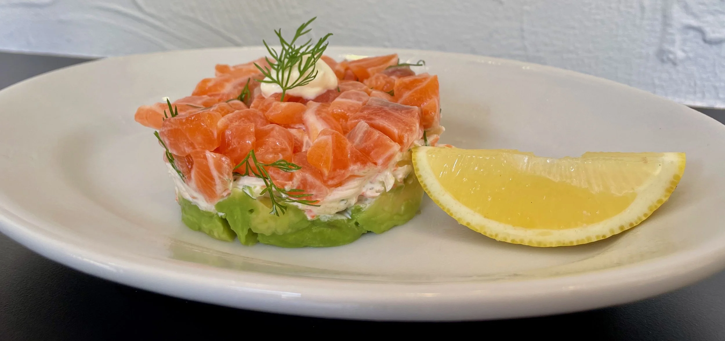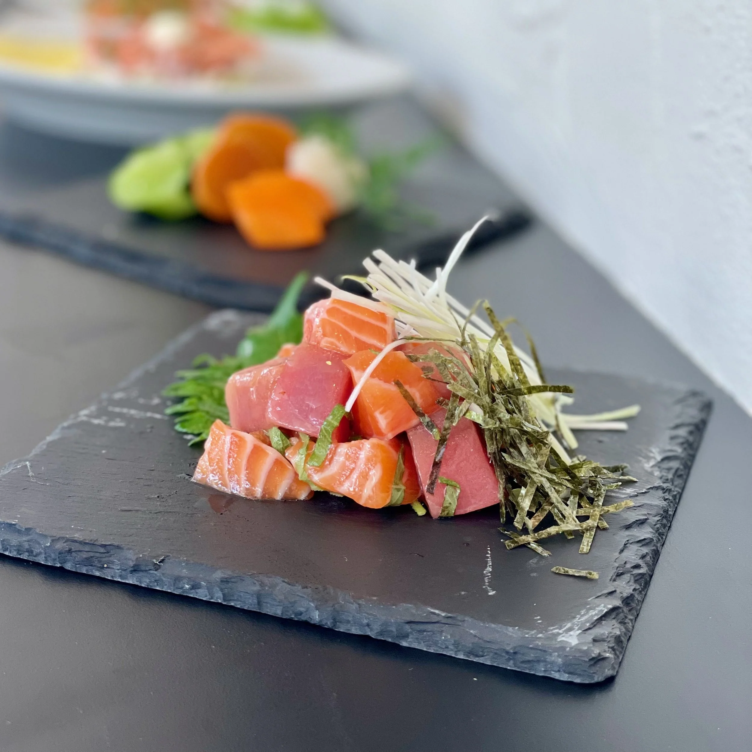 A light and refreshing appetiser which features salmon sashimi with avocado. An excellent dish to pair with sake.