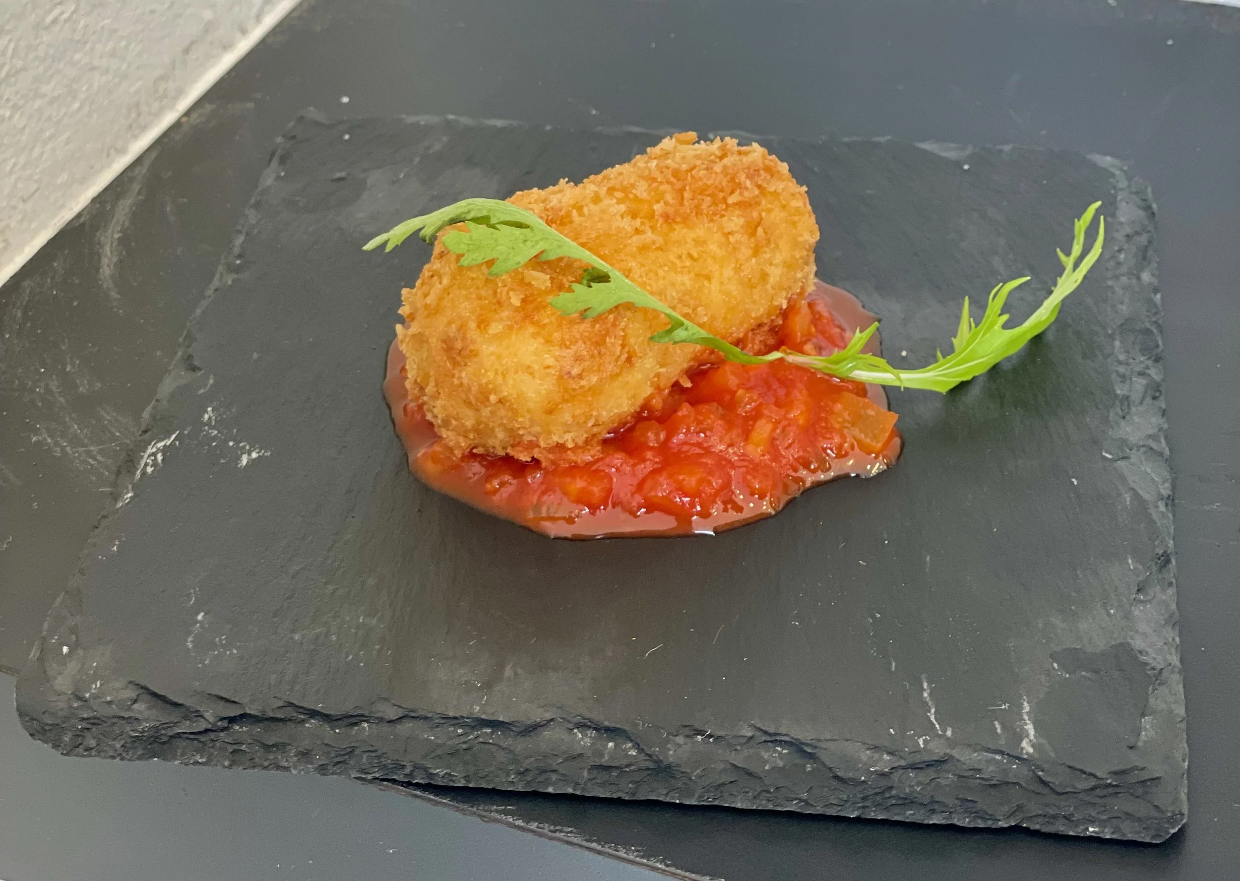 Crispy on the outside, creamy on the inside. This is a crunchy crab cake of deliciousness. Eat it on its own or with a dash of tangy tomato sauce for an extra zing.
