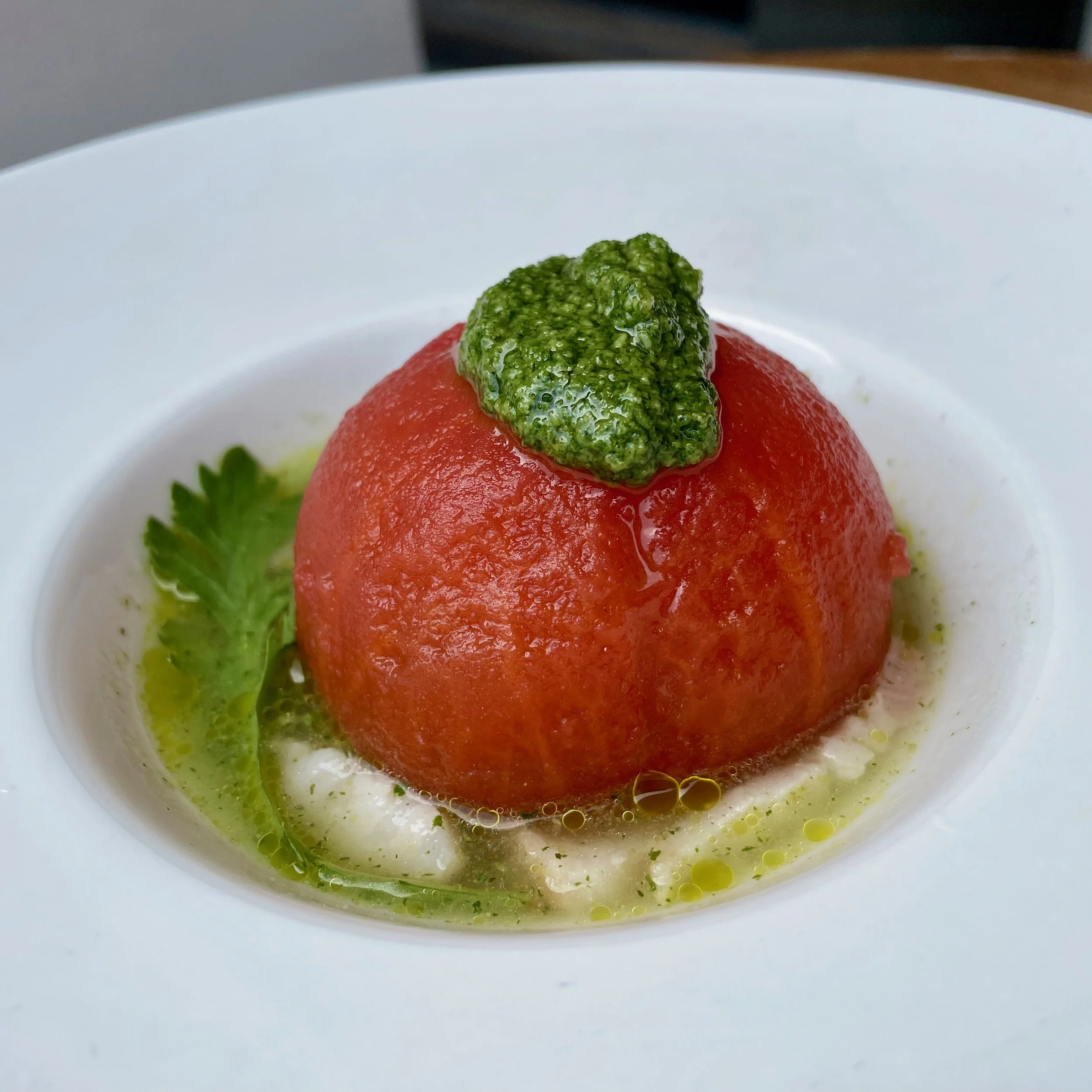 A lovely whole tomato dipped in dashi stock. We have to say that the bacon and basil combo added another level of umami to the dish.