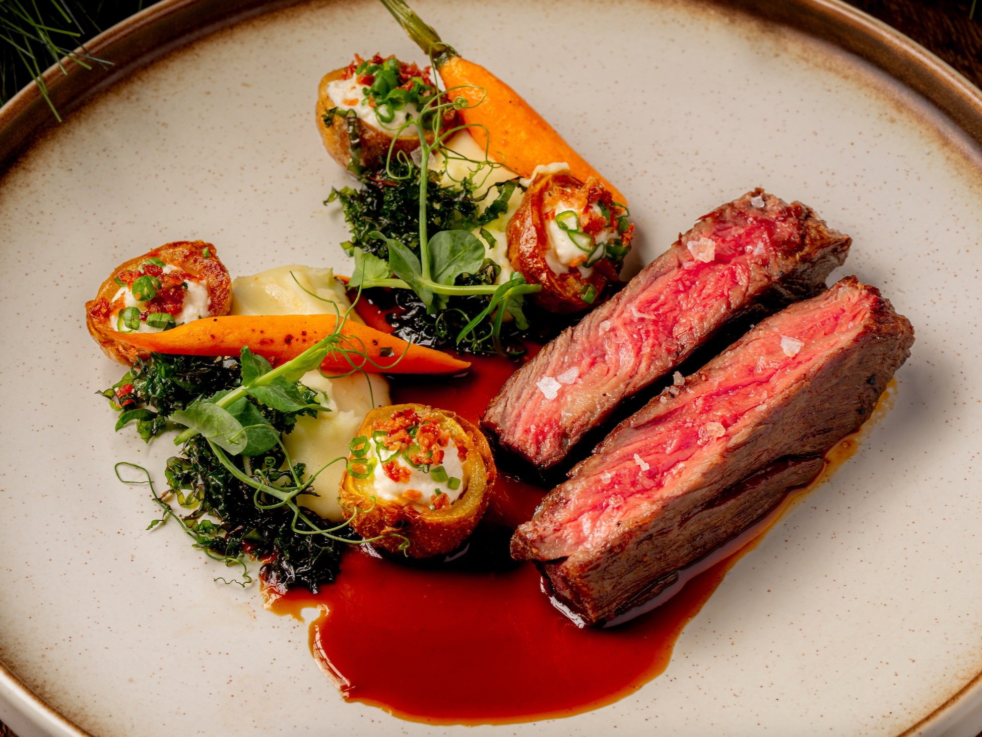 For the appetizers, choose between the Burrata Beetroot Salad, featuring greens, Italian burrata, pickled beetroot, charred golden beetroot, and more. Or the Cioppino Stew, highlighting black Spanish mussels and halibut served in a savoury seafood broth enriched with tomatoes, white wine, prawn, and lobster.