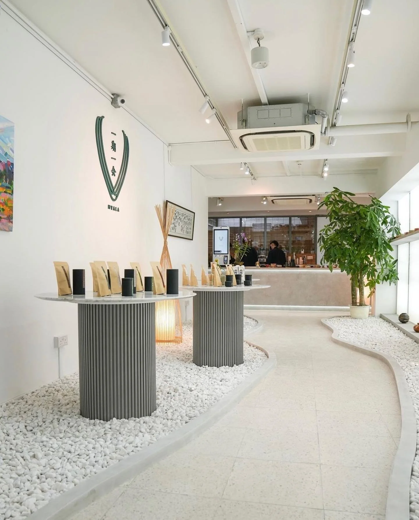 As you step into this minimalistic cafe, get greeted by a stone pathway lined with pebbles decorated with potted plants and Japanese-style bamboo light that makes you feel like you are in a Japanese garden.