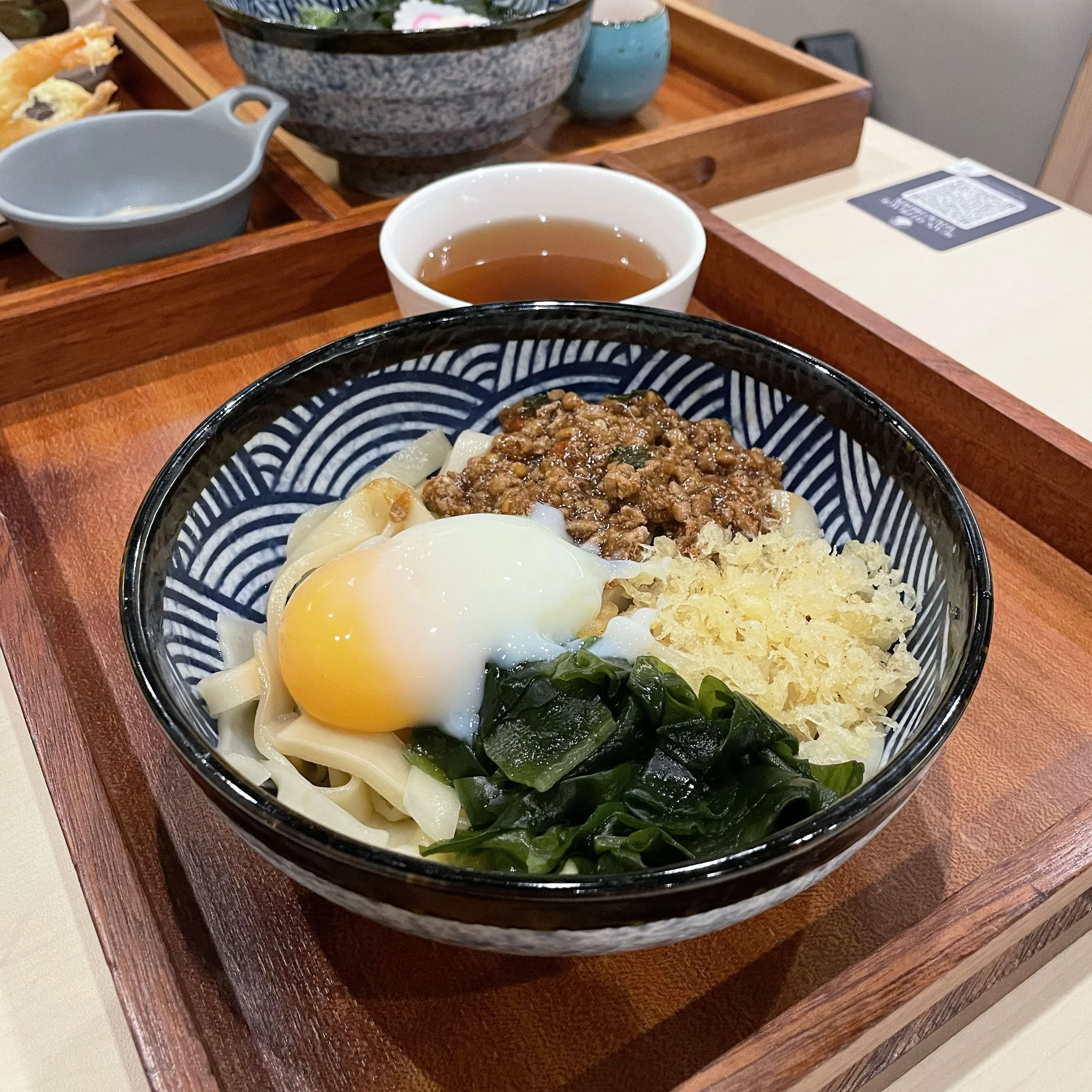 Topped with minced chicken in spicy miso, bird’s eye chilli and basil, the Spicy Basil Chicken ($16) may remind you of our local dry pan mee, except it is made with the thick and flat Hoto udon. This dish comes with a small bowl of dashi (clear broth soup), presenting it with more Japanese flavour. As this flavourful udon rendition may better appeal to our locals’ tastebuds, it is easily one of the most popular dishes.