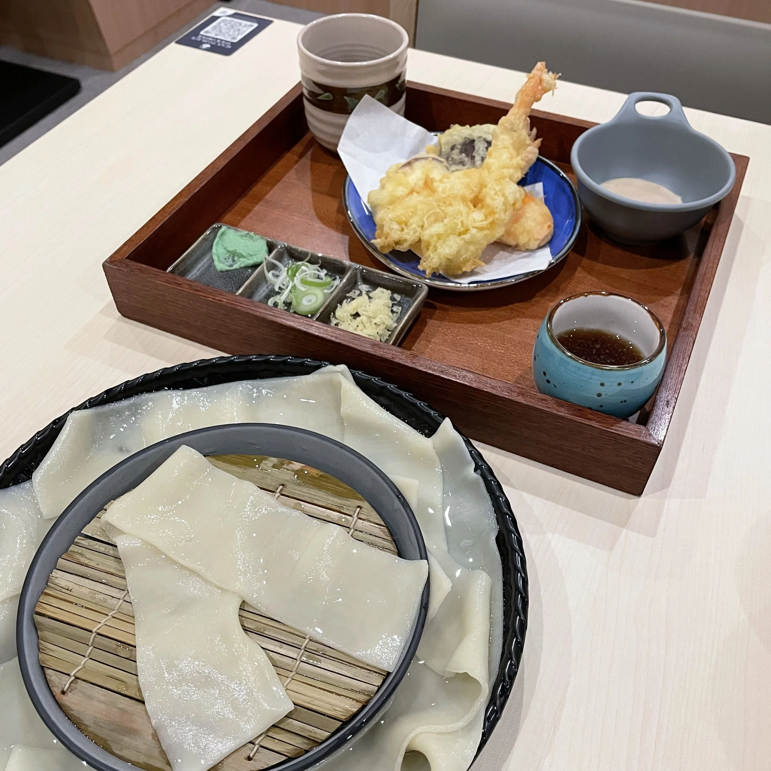 If you prefer to have more protein in your meal, Tenzaru ($16) has prawn tempura in addition to the assorted vegetable tempura. As it is a cold udon, it comes with garnishes like spring onion, wasabi and tempura flakes, and two dipping sauces: mentsuyu (the typical udon dipping sauce) and goma dare (sesame sauce).