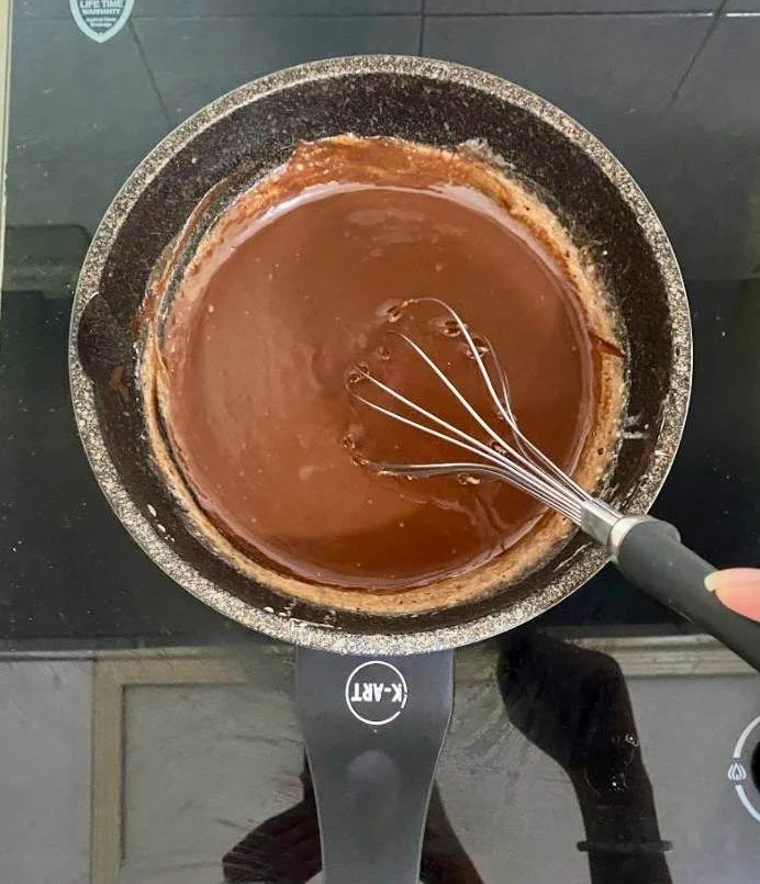 Your chocolate and cream mixture should look glossy and thick!