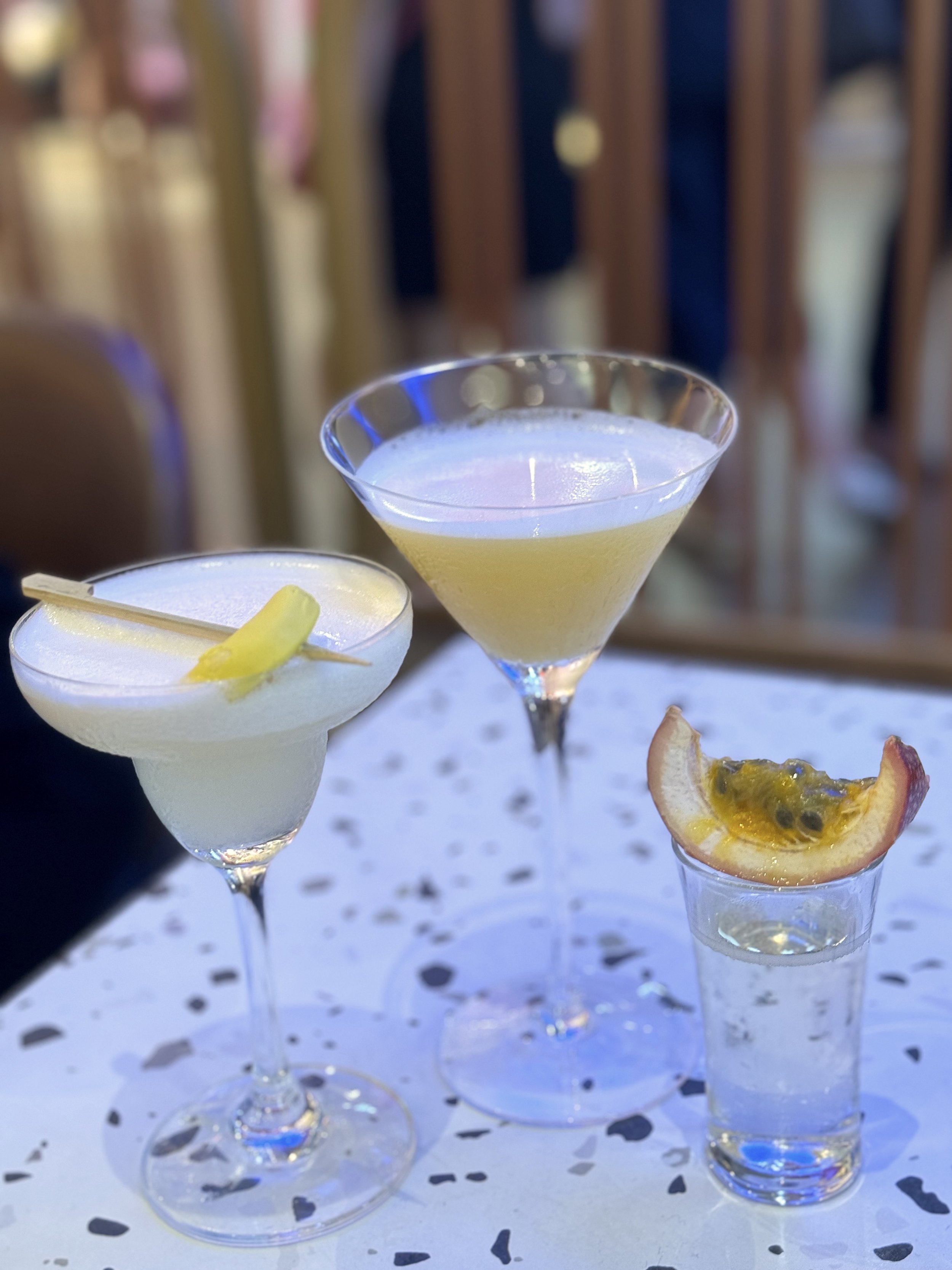 Left to right: Tokyo Banana, Pornstar Martini, Passionfruit Prosecco Shot