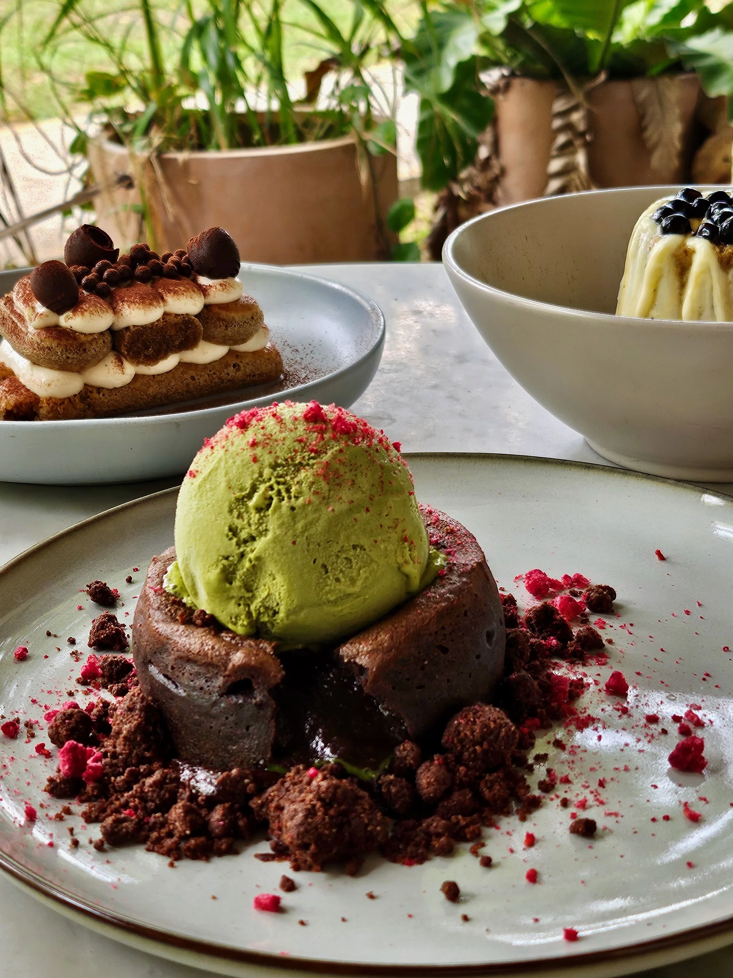 Matcha Lava Cake ($22) is a match made in heaven for matcha and chocolate lovers. Baked with almond flour, the chocolate cake houses a molten centre of vibrant green matcha lava ganache, topped with chocolate crumble and a scoop of matcha ice cream.