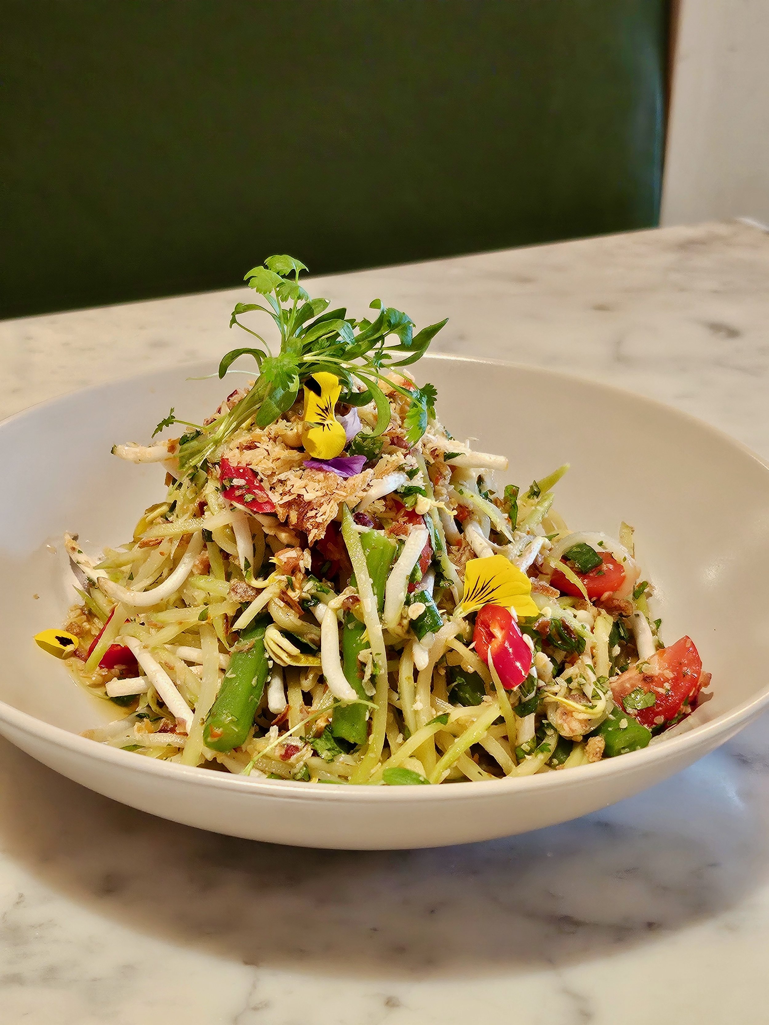 Fancy some fresh greens and scrumptious pasta? Inspired by the classic 'Som Tam', Thai Mango Salad ($24) will awaken your tastebuds with house-made cold-pickled green mango, crunchy bean sprouts, and chopped mint and coriander. The homemade candied peanuts and crispy shallots balance the refreshing greens with a burst of sweetness.