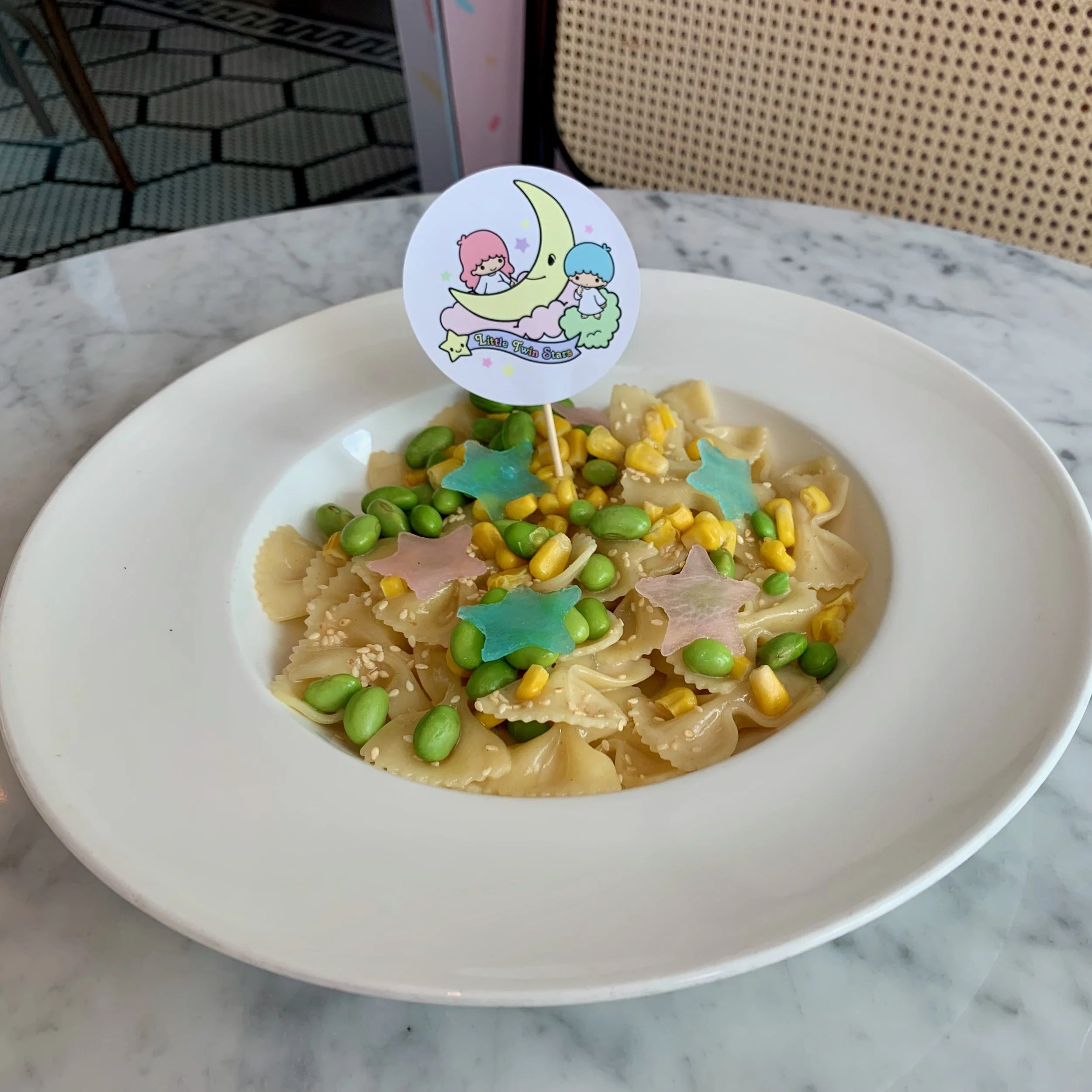 As for our main course, we had Pasta Adventures ($26) - Creamy Corn with Sesame and Edamame. This featured pasta is farfalle - a type of pasta commonly known as bow-tie pasta or butterfly pasta. It was undoubtedly a cute representation of Hello Kitty’s ribbon. The vibrant yellow and green colours of the corn and edamame added pops of colour to the simple cream pasta sauce. However, we wondered if a pink sauce (a blend of tomato sauce and cream sauce) would bring more colour and flavour to this pasta dish.