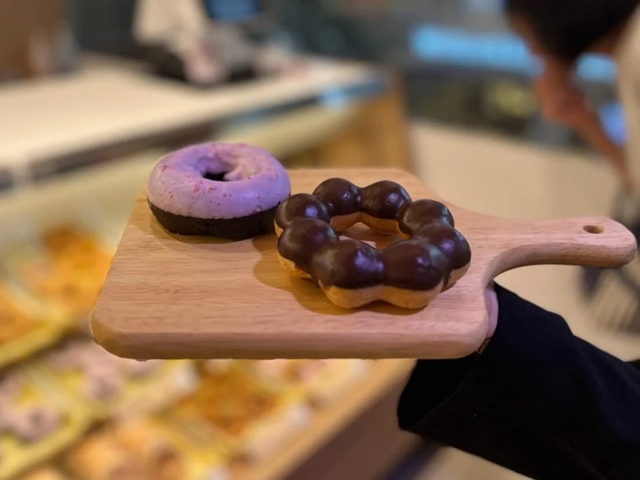 The Strawberry Chocolate donut comes in a cake-like texture and is glazed with strawberry sauce. The richness of the chocolate perfectly harmonizes with the sweetness of the strawberry sauce, creating a delightful and indulgent combination. The Pon De Ring Chocolate was our absolute favourite as it has a mochi-like texture, and the chocolate has a balanced sweetness that added to the overall perfection of this treat.