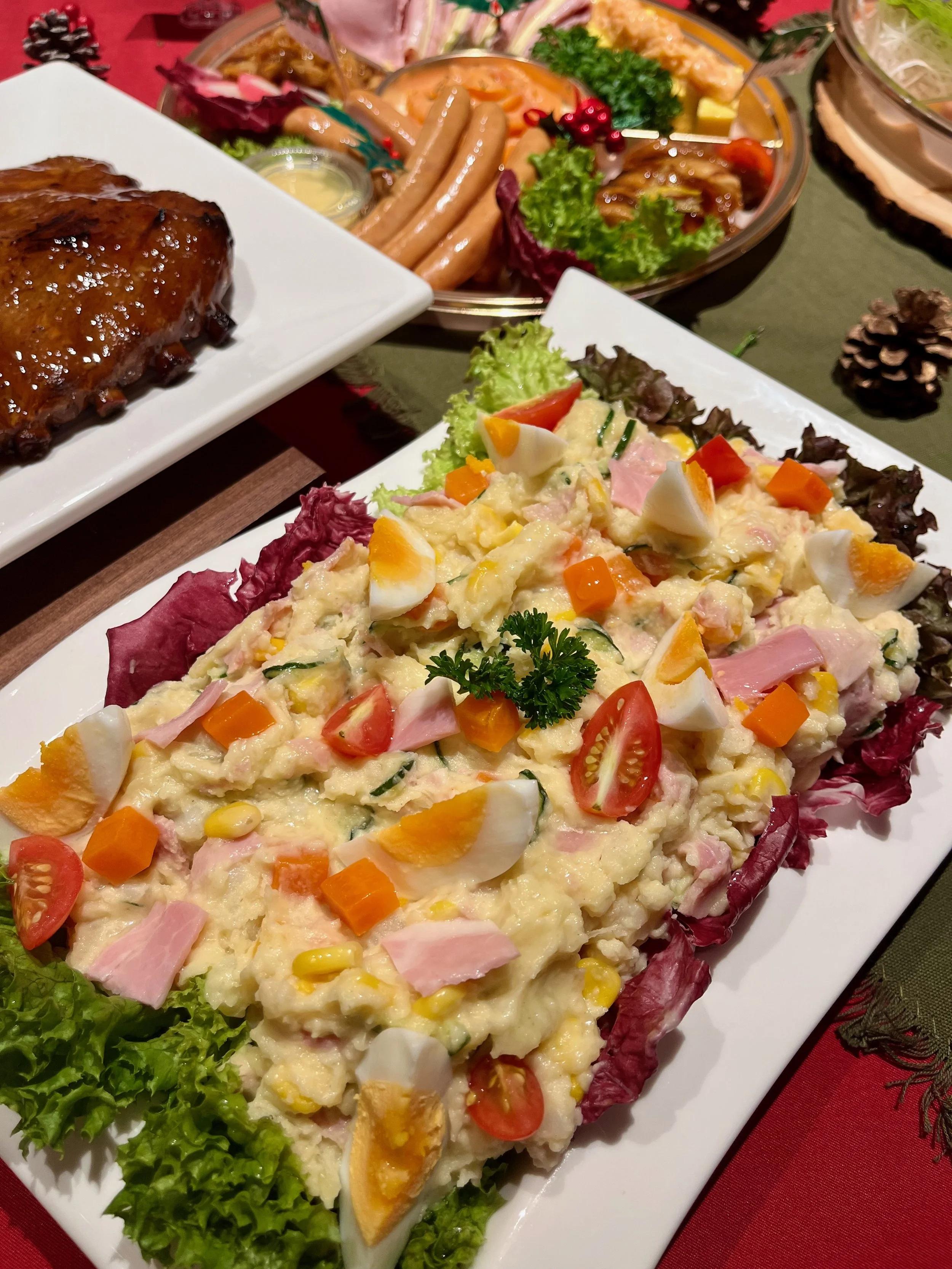Our favourites were Festive Canapé Platter, Gammon Ham & Potato Salad and Yuzu Bûche De Noël. The sharing platter would please both seafood lovers and younger guests with the splendid combination of smoked salmon, teriyaki scallop, tamago with lobster salad and gammon ham with cheese. Gammon Ham & Potato Salad was a simple yet truly heartwarming appetiser, with healthy veggies and proteins to satisfy most palates!