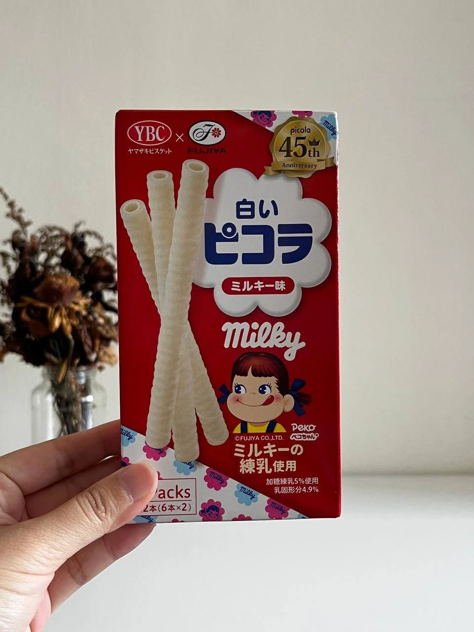 This white chocolate cookie is filled with condensed Milky goodness and the sweetness lingers in your mouth! It has a similar texture to the Want Want Wafer Roll.