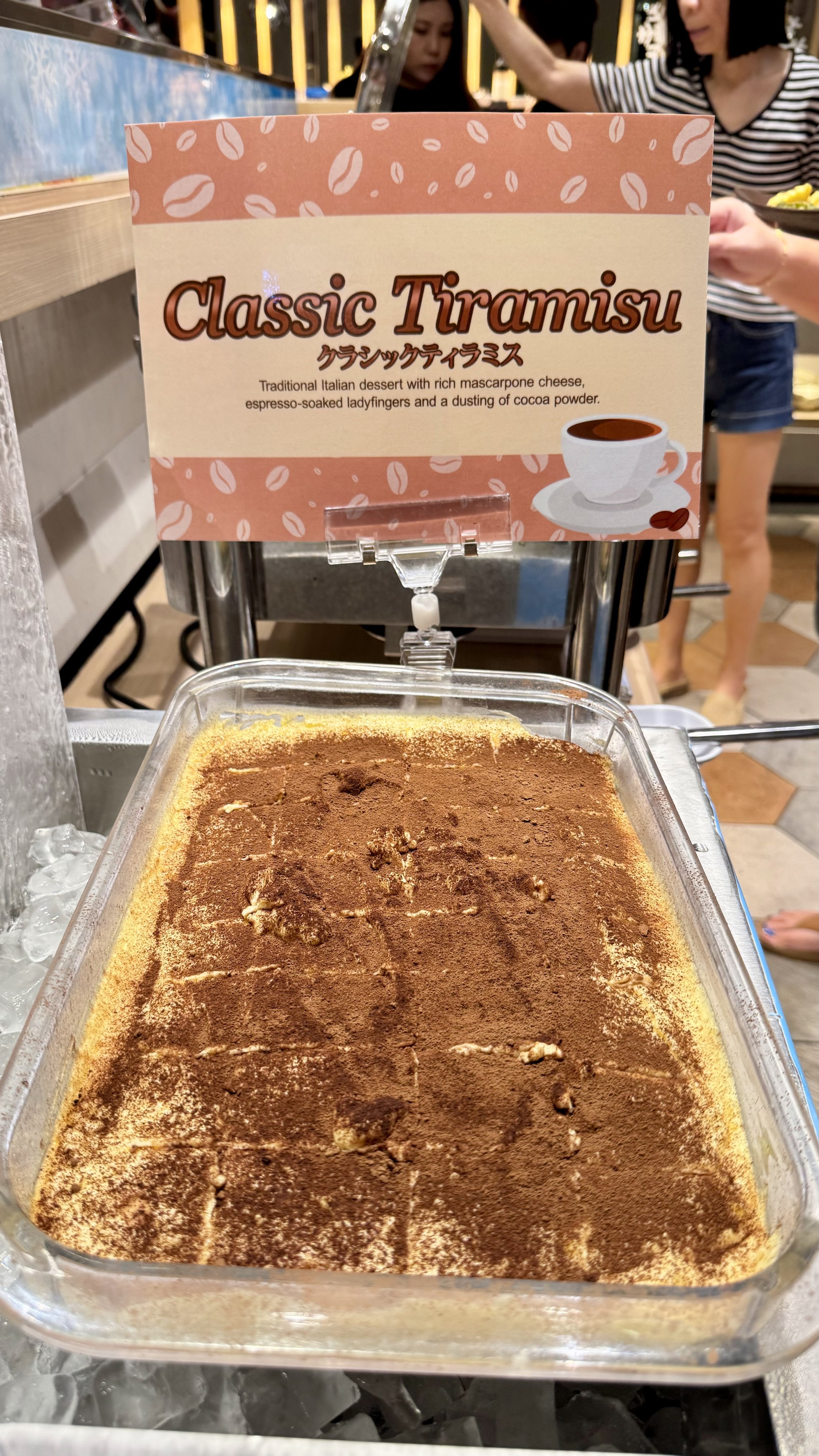 Treat yourself to the seasonal Classic Tiramisu, a delighful blend of rich and creamy mascarpone cheese, espresso-soaked ladyfingers and a delicate dusting of cocoa powder.