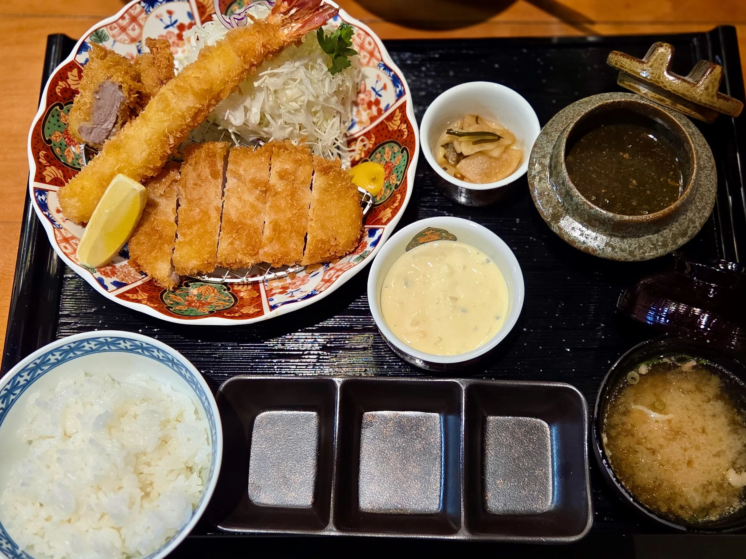 The Shin Katsu Combo Set ($34.80) is ideal for those who want variety, serving up a trio of prawn, Canadian Rosu, and Hire cutlets on one plate.