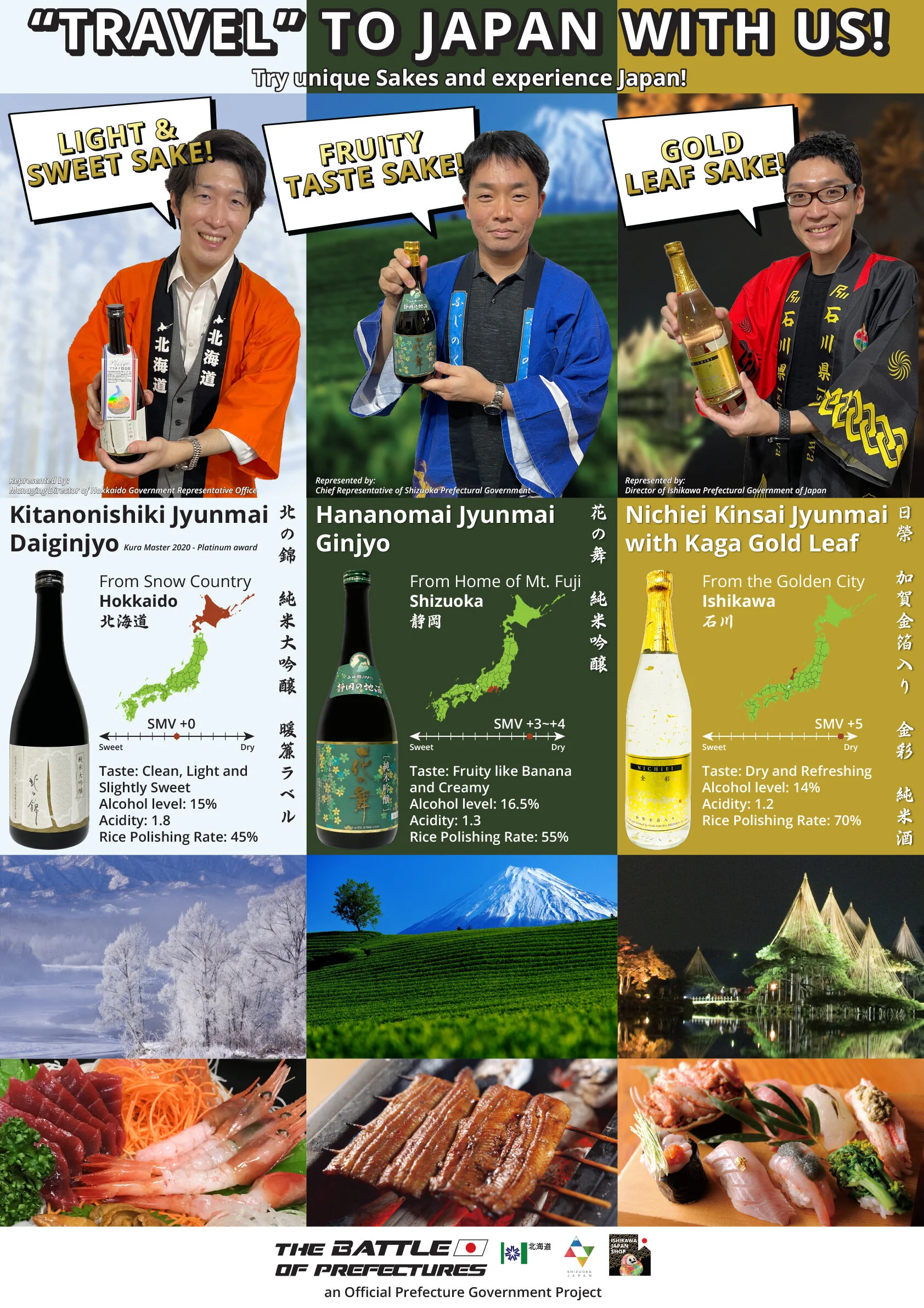 From 18th January to 17th February 2021, Shizuoka Prefecture, in collaboration with Hokkaido and Ishikawa Prefectures, will offer Sake Tasting Menus at 9 restaurants in Singapore. Not only just sake tastings, but you will also take a virtual tour around the 3 prefectures as the representatives from Hokkaido, Shizuoka, and Ishikawa prefectures take you along to each famous attractions and the activities you can do in their prefecture!