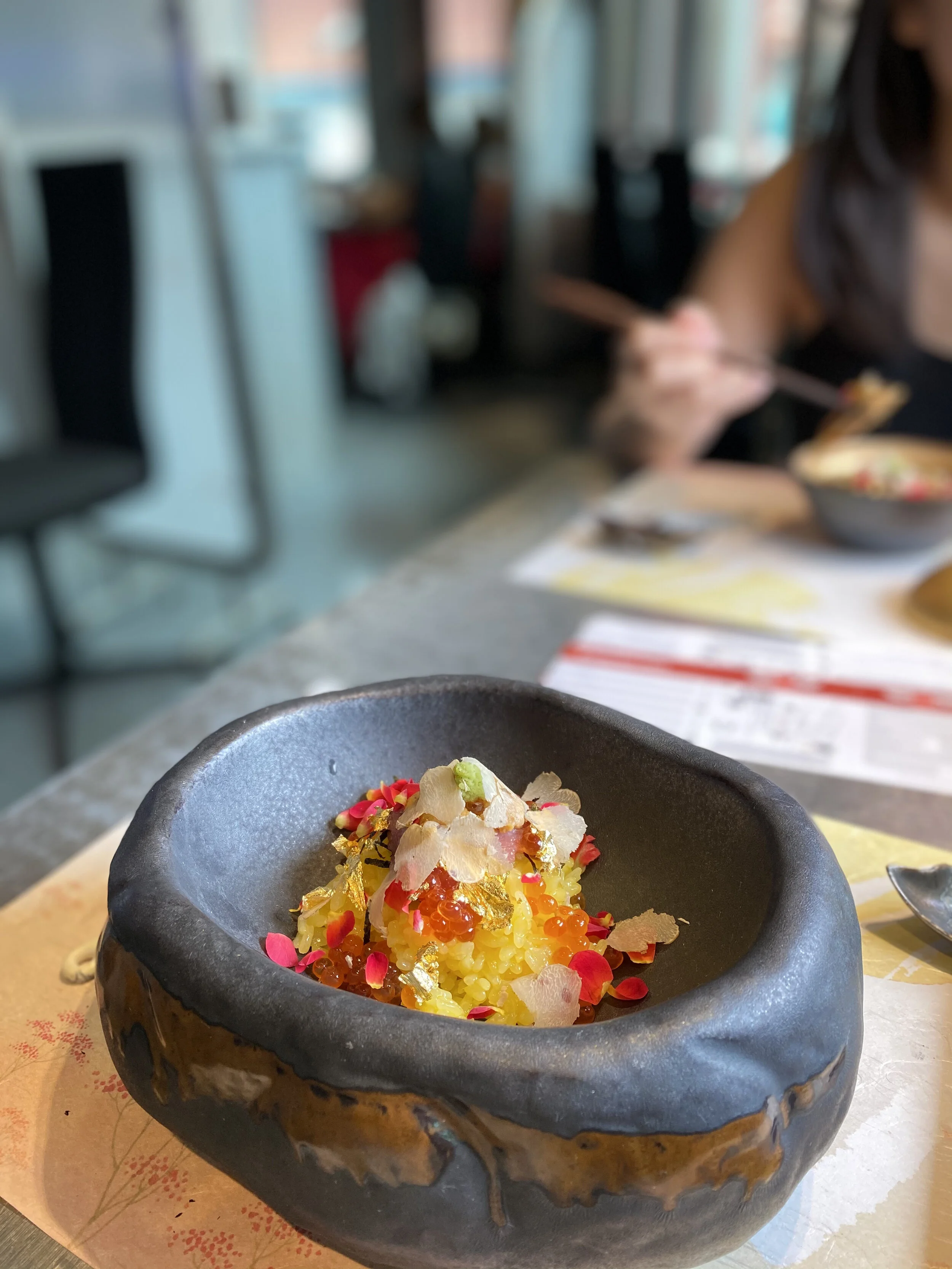 7th course (2nd alternative) - Tamago Rice with Fresh Uni and Grated White Truffle