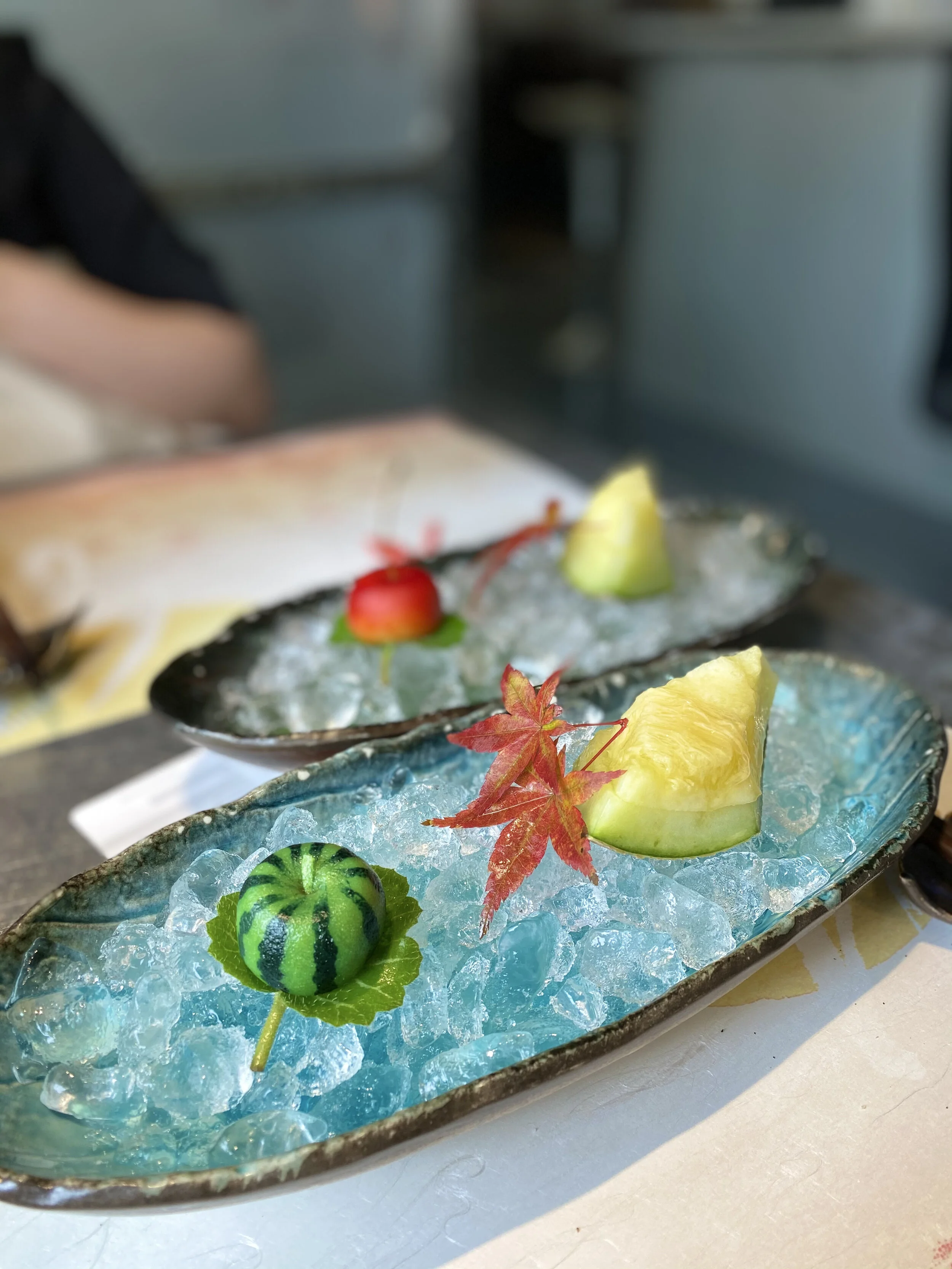 Ending off the Omakase course with a sweet Japanese musk melon and a watermelon-shaped mochi!