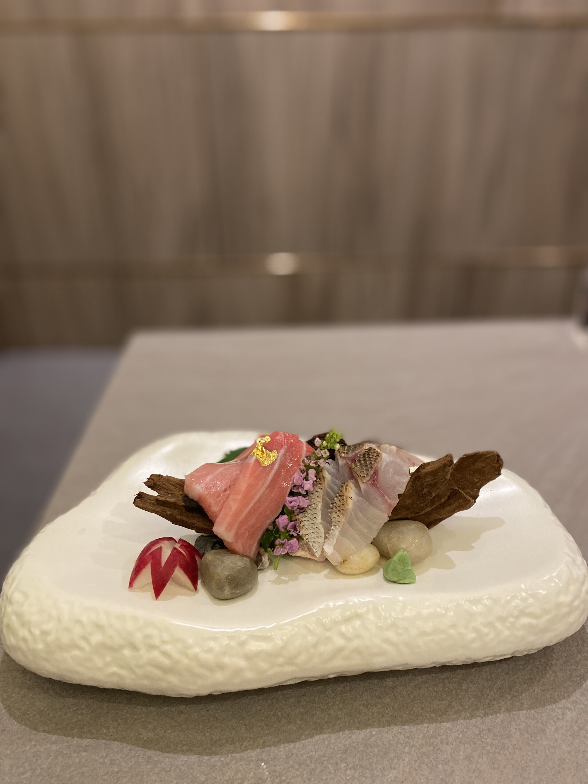 From right to left: Chidai with Ponzu Daikon Oroshi, Hokkaido scallop with Yuzu Kosho, A4 Kagoshima Short Ribs with Wasabi Shuyu Zuke