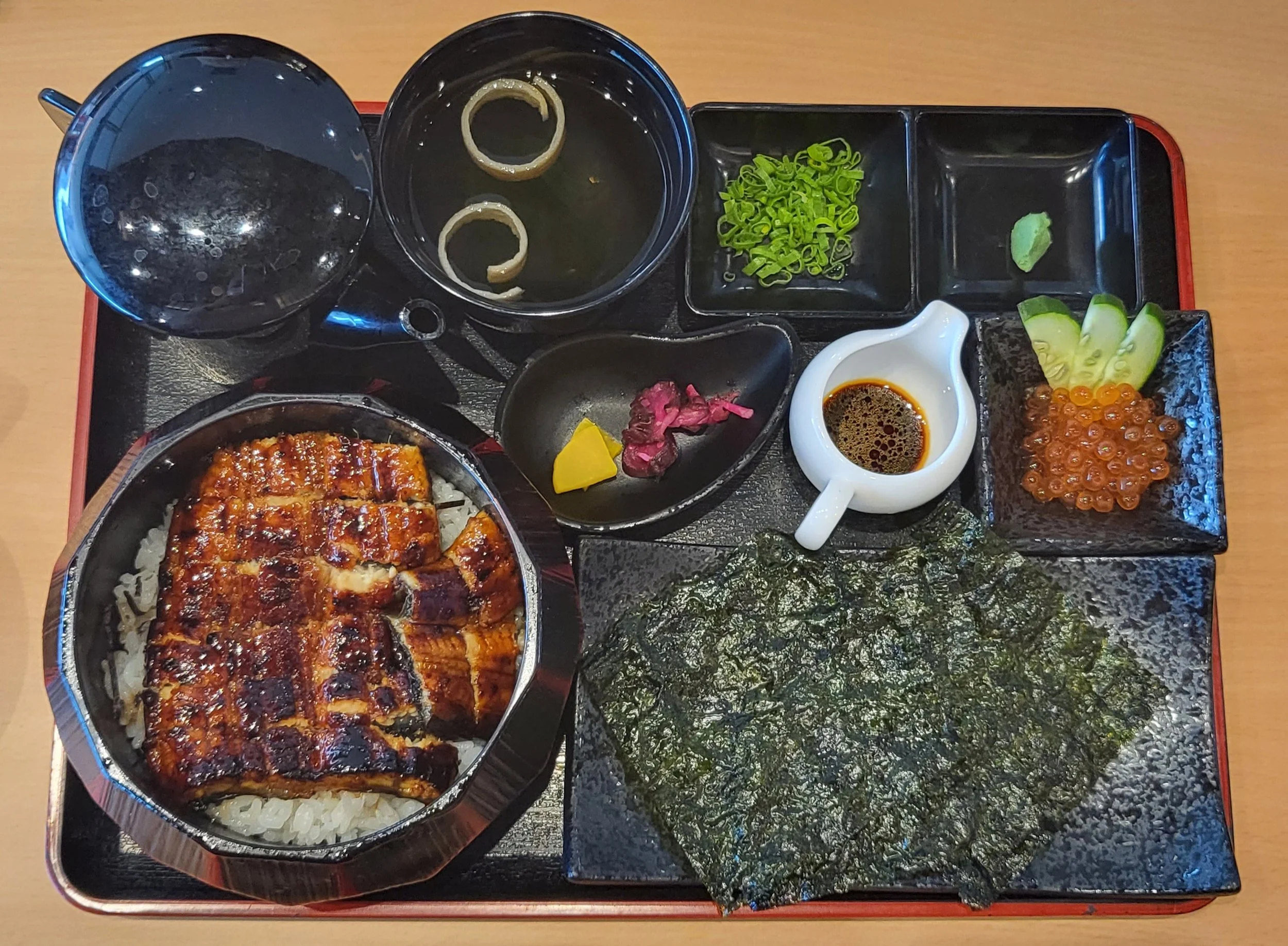 If you are new to unagi cuisine, hitsumabushi is a traditional Japanese dish with lots of finely chopped grilled eel served on top of rice. It is served alongside condiments such as wasabi, chopped green onions, and dashi broth/tea.