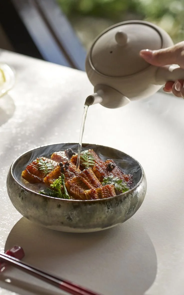 Keyaki Japanese Restaurant at Pan Pacific Singapore is celebrated for its authentic Japanese cuisine and tranquil garden setting. Surrounded by a landscaped Japanese garden and koi pond, the restaurant provides a serene backdrop for enjoying delicacies crafted with seasonal ingredients. The menu features a wide range of classics, from sashimi and teppanyaki to hotpot dishes, along with highlights such as Sashimi and Una Jyu Gozen ($75), unagi grilled to perfection with a rich, savoury-sweet glaze. On the dinner menu, you can find Unagi Hitsumabushi (Nagoya Style) ($65), grilled eel served with steamed rice and clear soup (ochazuke).