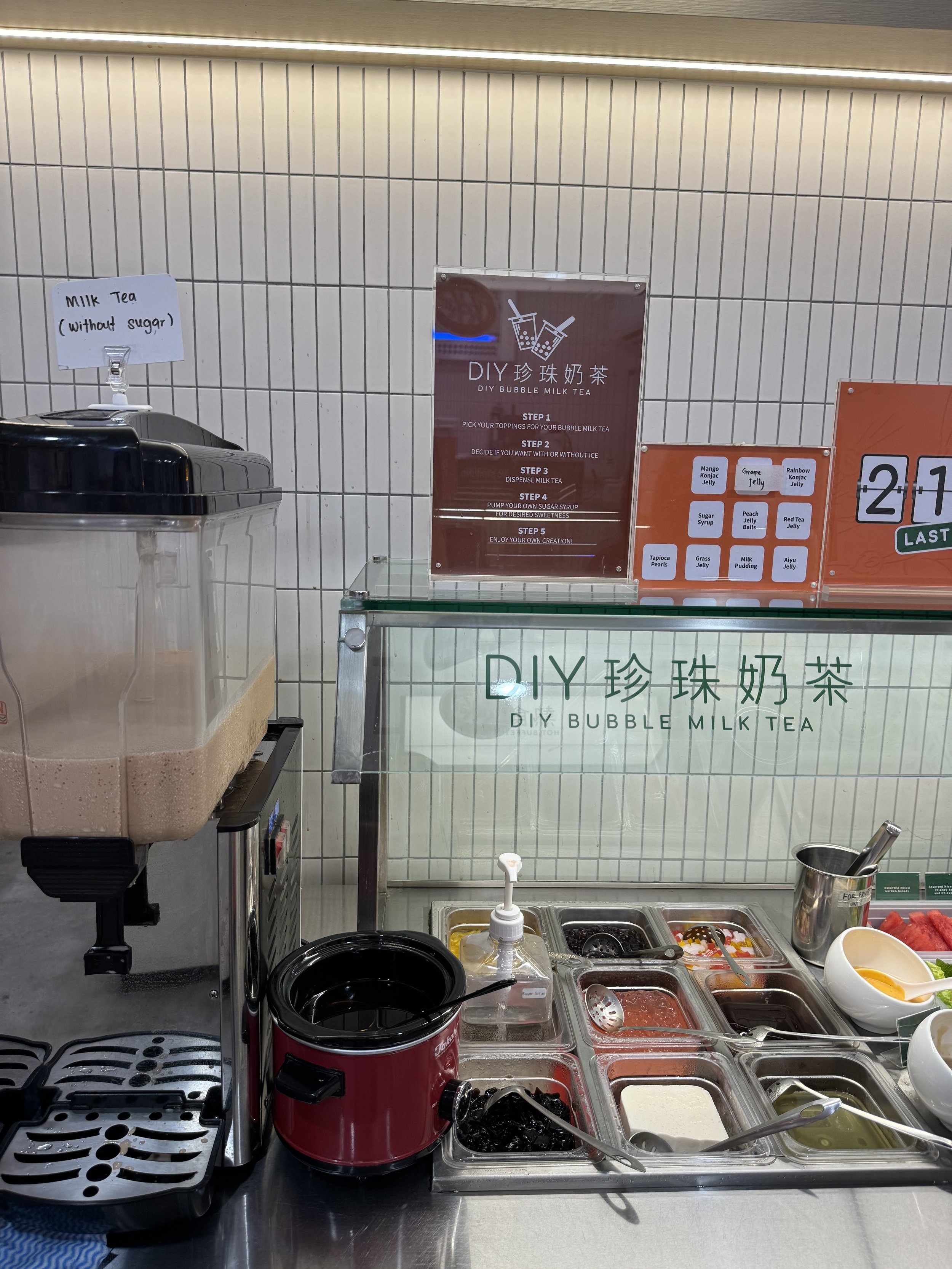 The DIY Bubble Tea Bar has an extensive selection of toppings to choose from, including bubble tea staples such as Tapioca Pearls, Grape Jelly and Milk Pudding. You can also determine the sugar level of your drink by pumping your own sugar syrup and the amount of ice. And yes, you can go back for seconds, thirds or fourths, basically to your heart’s (or stomach’s) content!