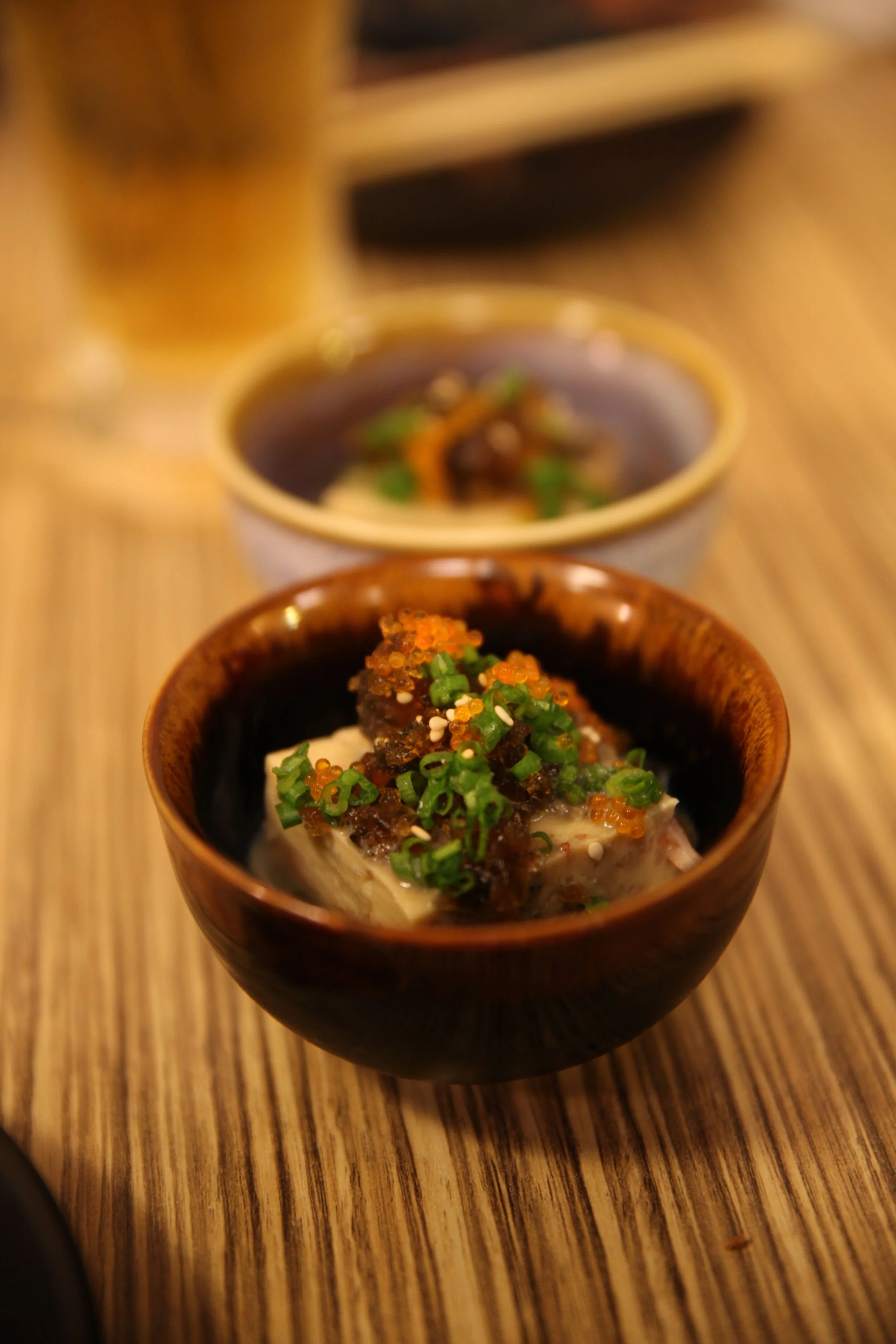 Had to order my favourite pitan tofu (century egg beancurd), which was good by the way — pairing it with a dozen bite-sized kushiyaki skewers! Be sure to wash down with their fried chicken karaage too!
