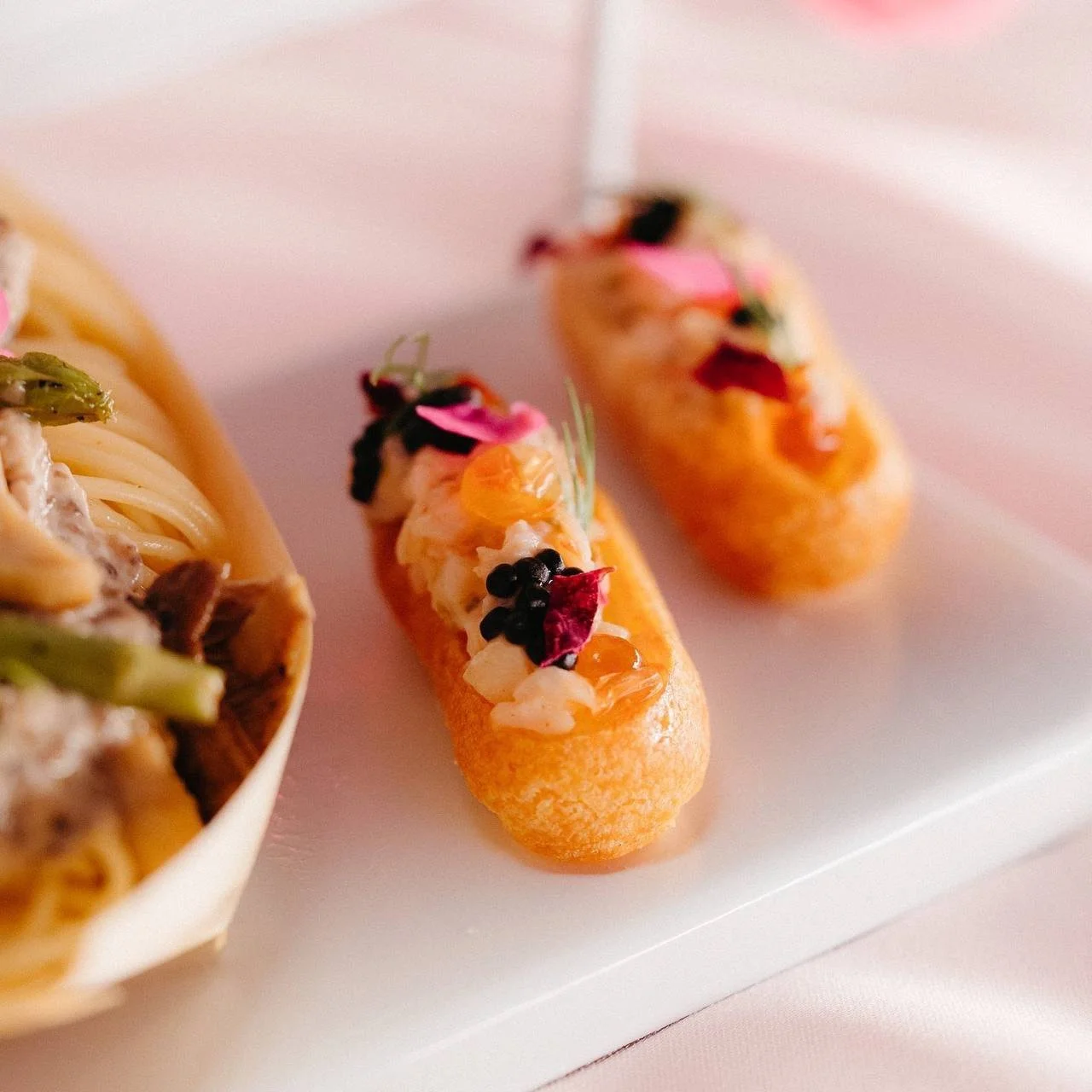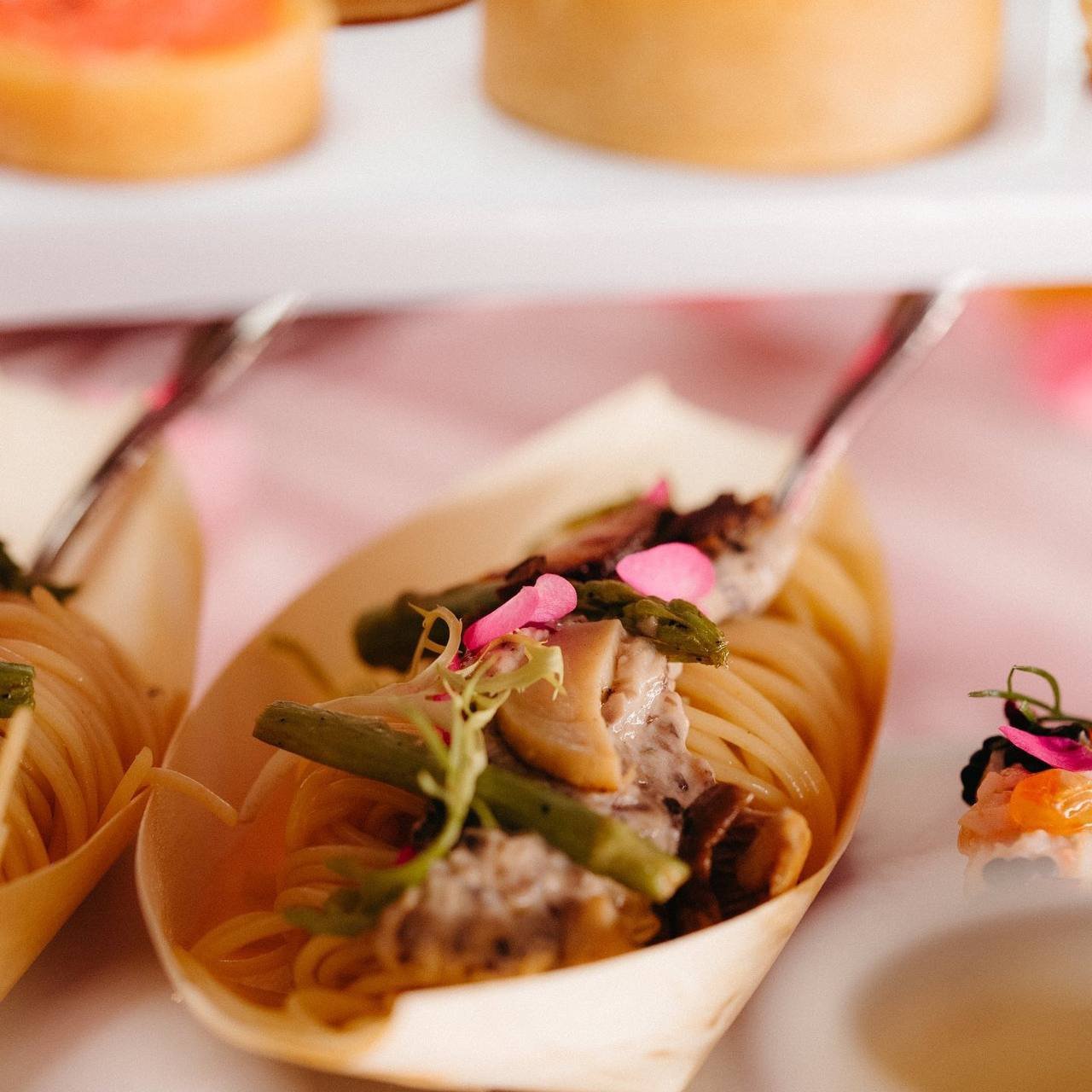 Petit Truffle Pasta Mini Boat with Wild Mushroom and Rose Petals