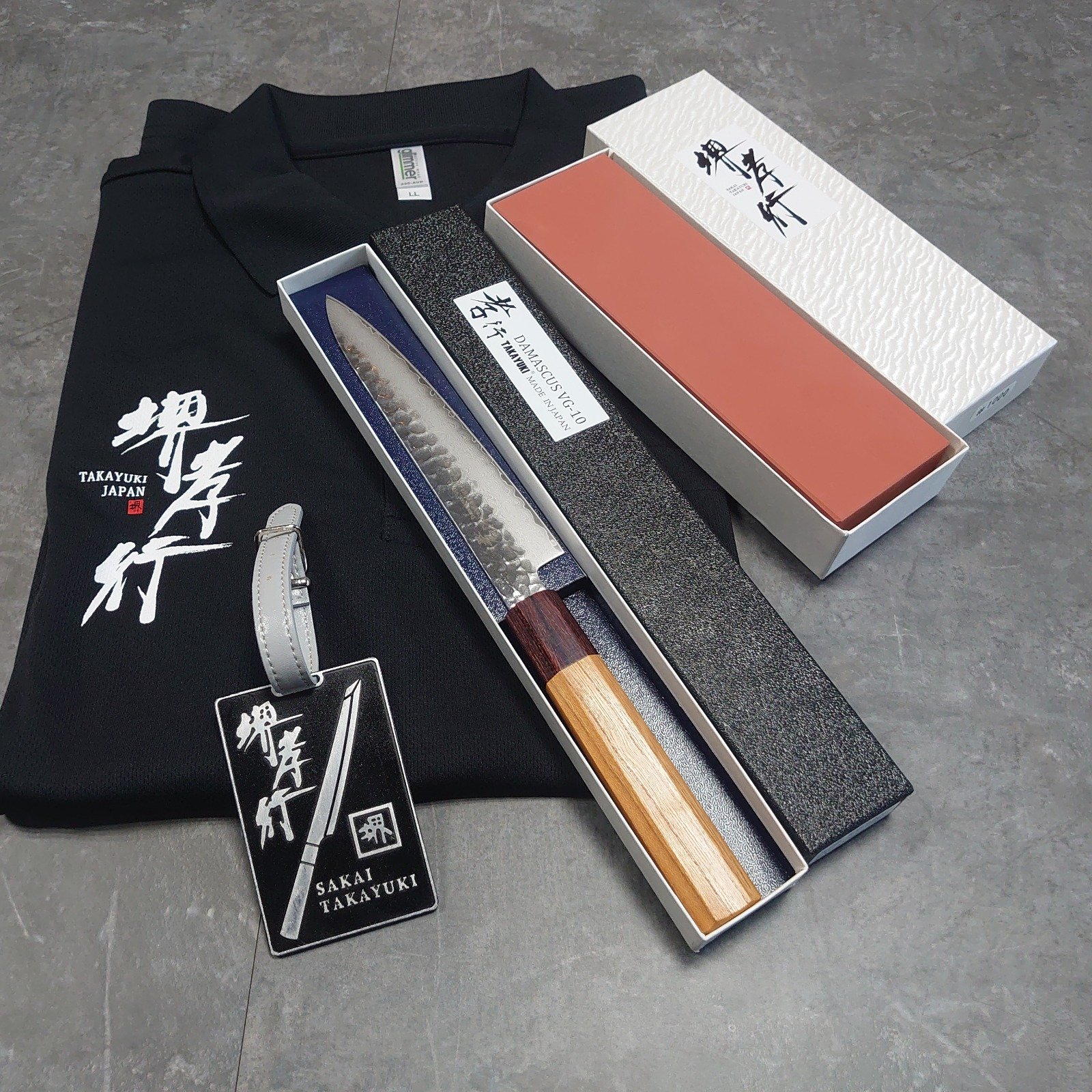 Receive exclusive Sakai Takayuki merchandise such as the Bag Tag with a knife purchase that includes FREE engraving, or grab the Bag Tag, T-shirt, and FREE Knife engraving when you spend a minimum of $400. While stocks last!