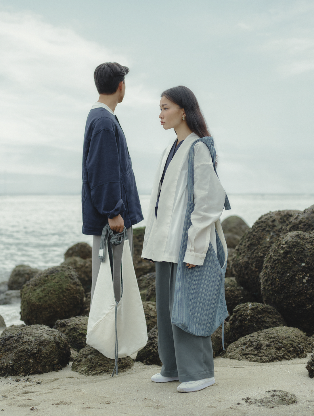 Make sure not to overlook their newest collection, Zen Out (from $99 to S$159), which embodies a contemporary Zen lifestyle. This captivating line showcases a range of sleek silhouettes and understated designs that skillfully blend influences from both Eastern and Western aesthetics. It includes oversized linen shirts, wrapped button kimonos, harem pants, high-collared Shan shirts, straight-cut pants, and a crossed-body Tsuno bag.