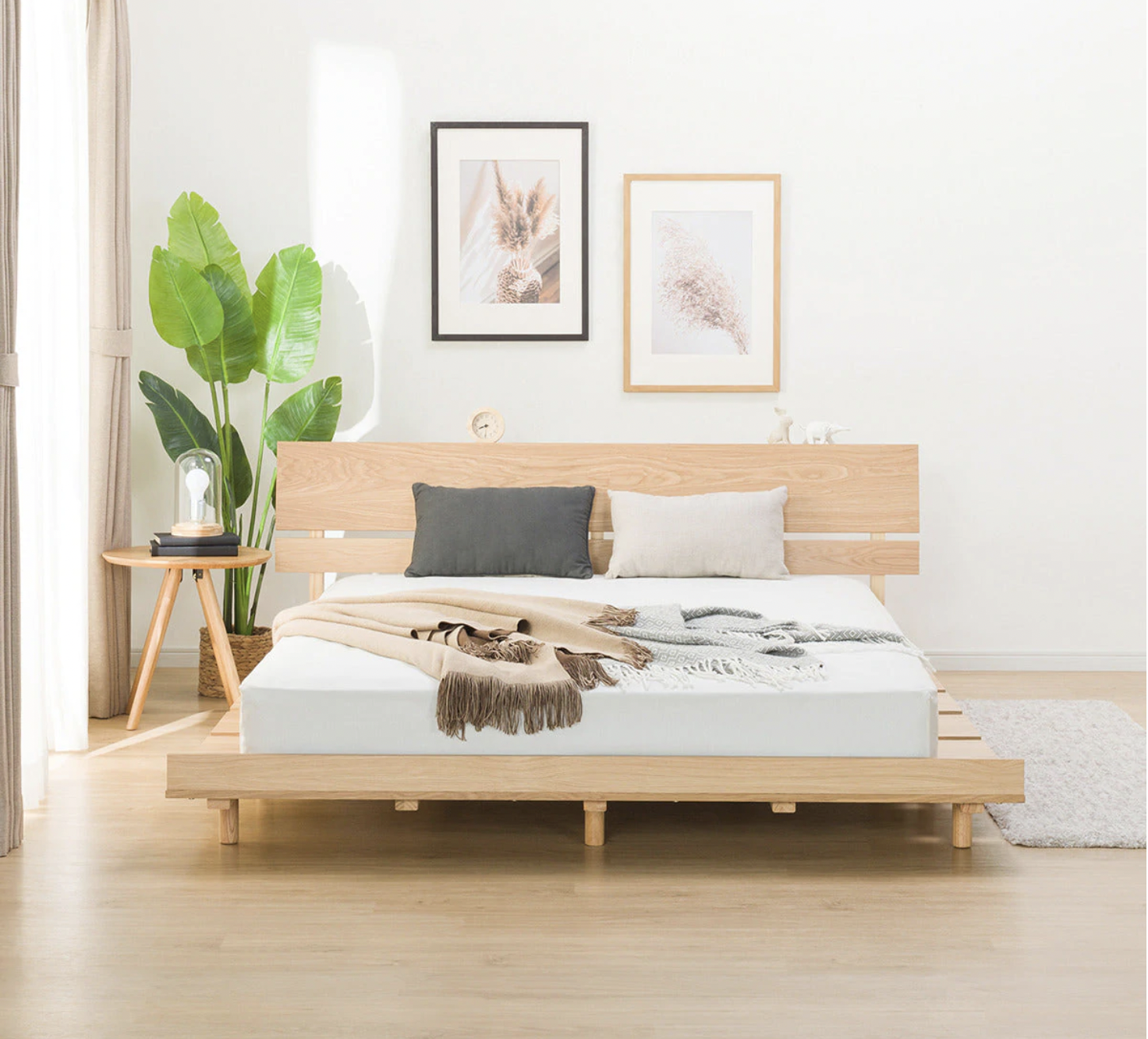 Check out NITORI low-to-the-ground Double/Queen bed frame that enables you to get a night of better sleep as the gaps in the frame allow excellent ventilation and help release moisture and heat during your sleep! Besides, this bed frame is multifunctional. Apart from sleeping on it, you can use it as a side table for your books or phone by making an extra space using a smaller mattress. In addition, the headboard also has a small shelf that allows you to place your sleep essentials. Isn't it so convenient!