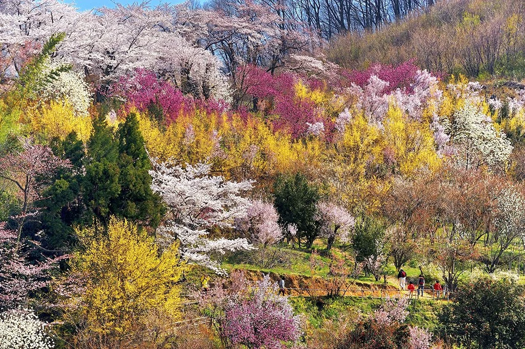 What makes this park so famous? Aside from its beautiful differently-colored cherry blossoms sight, there are also plentiful trails and paths for visitors to take a relaxing stroll. Additionally, a viewpoint at the top provides a nice panoramic view of the sakura!