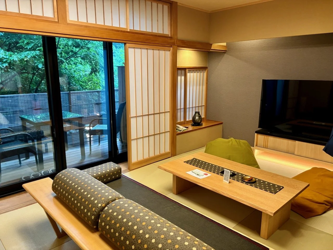 Miko no Shizuku Suite with Open-Air Bath: This room has a universal design suitable for wheelchair users. It offers a panoramic view of Lake Suwa